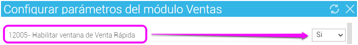 3) Habilitar el parámetro 12005- Habilitar ventana de Venta Rápida estableciéndolo en Sí.