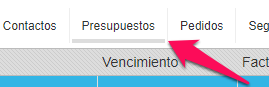 Buscar el módulo “Presupuestos”, si no se encuentra en la barra superior con los demás módulos, podremos dar con él en el desplegable al que accedemos haciendo clic sobre el nombre de nuestra empresa.